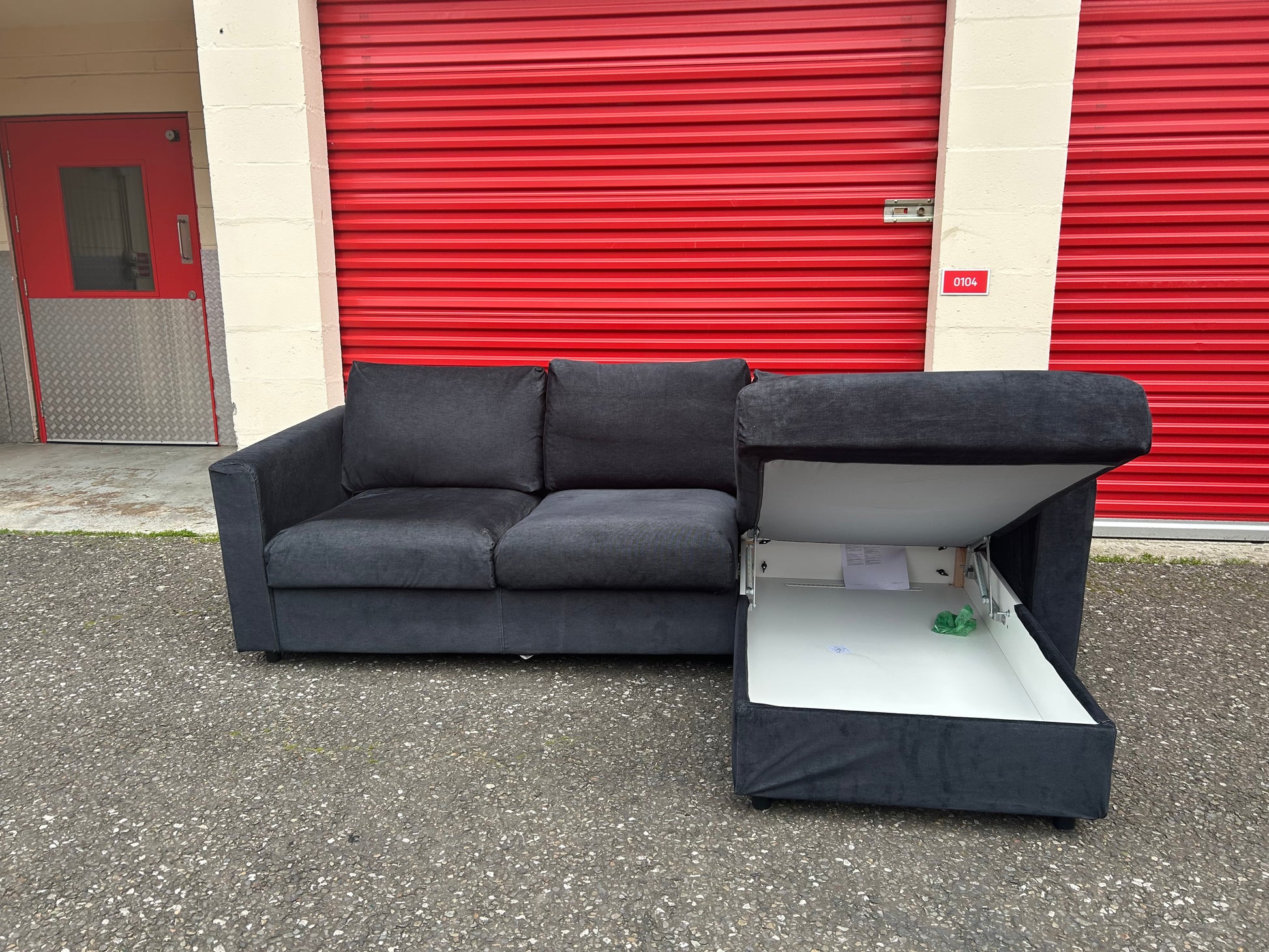 Chaise can be placed on either side to suit your room layout. Chaise also contains storage