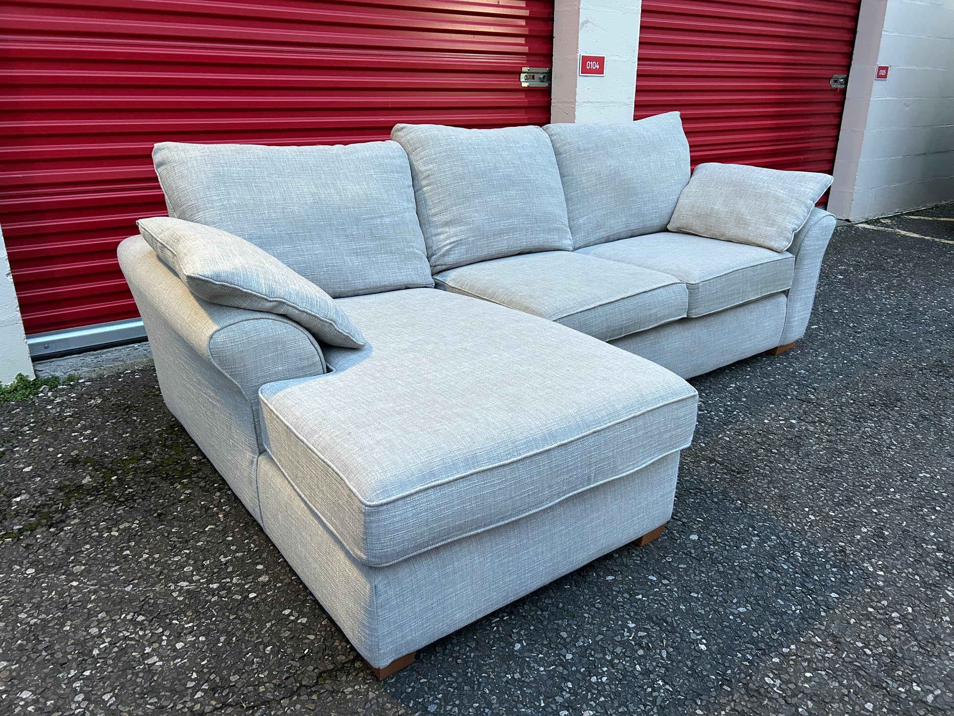 Next Stamford corner sofa in light grey, very good condition.