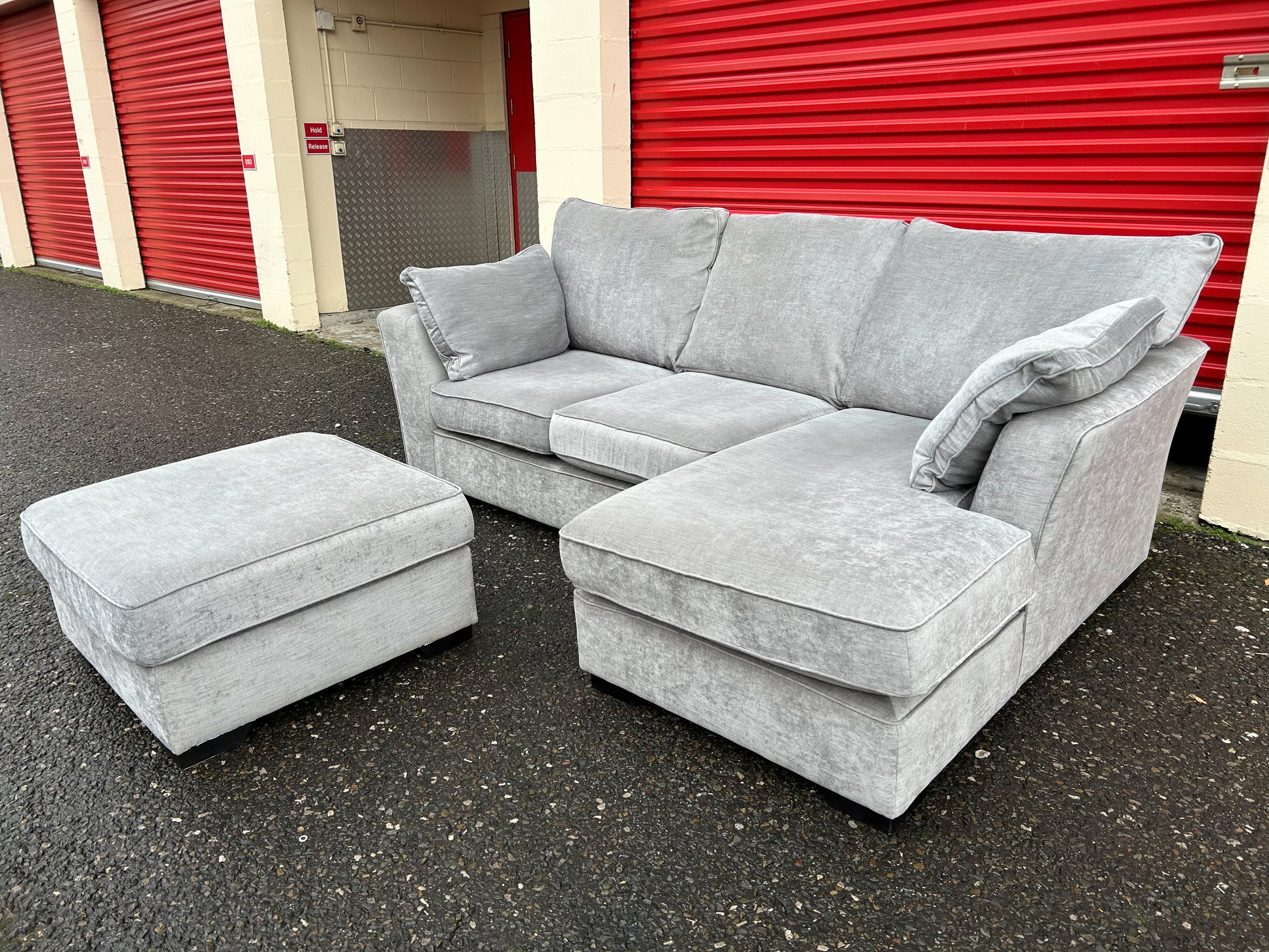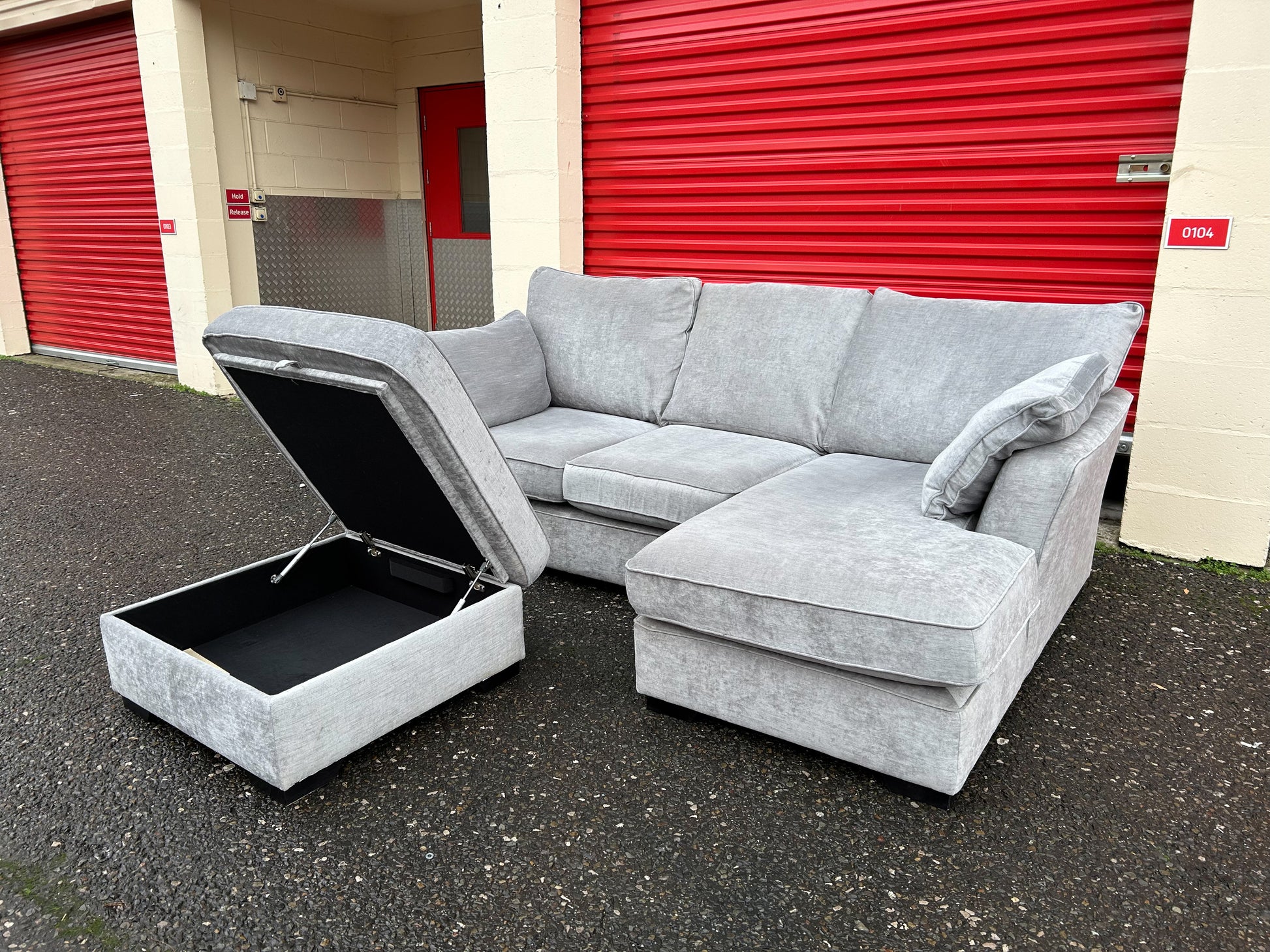 Next Stamford Silver Grey Corner Sofa & Storage Footstool