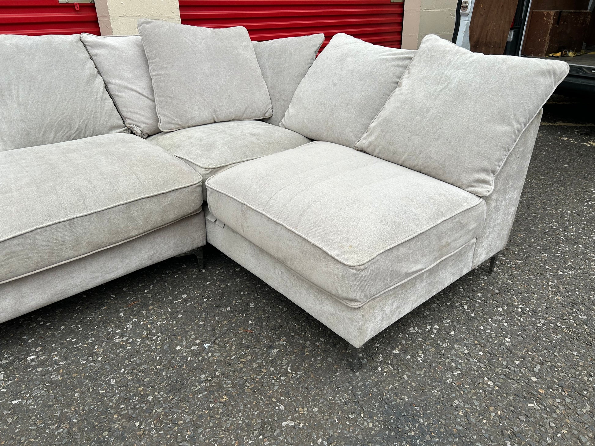 Cream coloured textured fabric corner sofa from Furniture Village in excellent condition.